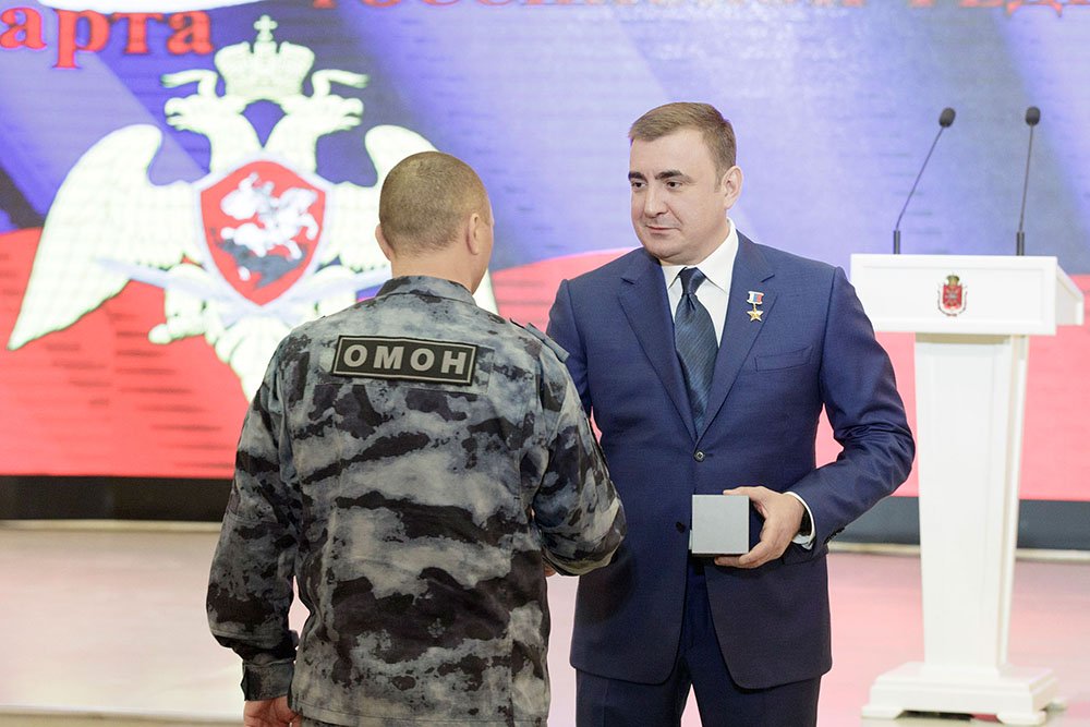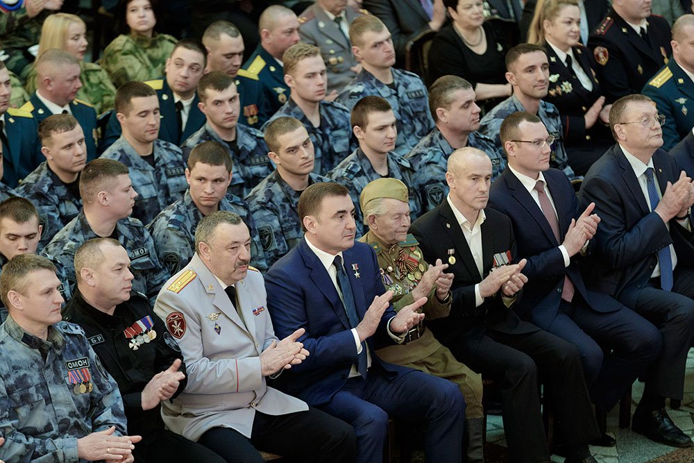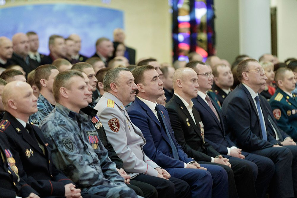 27 марта в Тульском государственном музее оружия состоялось торжественное собрание, посвященное Дню войск национальной гвардии Российской Федерации. Мероприятие открылось видеопоздравлением Президента РФ Владимира Путина. Глава государства подчеркнул, что Росгвардия достойно продолжает и развивает лучшие традиции внутренних войск МВД, подразделений ОМОН и СОБР, вневедомственной охраны и лицензионно-разрешительной службы. «Бойцы и командиры, личный состав национальной гвардии России всегда с честью выполняют полученный приказ, обеспечивая безопасность наших граждан, общества и государства, действуют мужественно, умело и результативно. Уверен, так будет и впредь», – отметил Владимир Путин. Также было показано видеопоздравление Директора Федеральной службы войск национальной гвардии – главнокомандующего войсками национальной гвардии Российской Федерации Виктора Золотова. С профессиональным праздником собравшихся поздравил Губернатор Алексей Дюмин. Глава региона отметил, что только в 2018 году подразделения специального назначения тульского Управления Росгвардии выполнили более 500 заданий на территории нашего региона и еще 266 – на Северном Кавказе. Были задержаны сотни нарушителей закона, освобожден заложник, изъяты 17 единиц незаконного оружия и несколько тысяч боеприпасов. «Основная нагрузка в борьбе с преступностью лежит на СОБРе, ОМОНе и воинских частях специального назначения. Сегодня это костяк Росгвардии – подразделения, которые всегда находятся в авангарде борьбы с преступностью. Не менее значима роль вневедомственной охраны и лицензионно-разрешительной службы. Все вы – надежный щит нашего государства. И вместе в непростых современных условиях мы не позволим деструктивным элементам подорвать спокойствие нашего общества», - подчеркнул Алексей Дюмин. Губернатор поблагодарил личный состав Управления Росгвардии за образцовую службу, а ветеранов – за сохранение преемственности поколений и передачу опыта молодым сотрудникам. Также Алексей Дюмин пожелал «росгвардейцам» с любых заданий всегда возвращаться к родным и близким. Отличившиеся сотрудники были отмечены ведомственными и региональными наградами. Губернатор вручил сертификат на оснащение Управления Росгвардии по Тульской области его руководителю Олегу Петрику. Мероприятие продолжилось праздничным концертом.