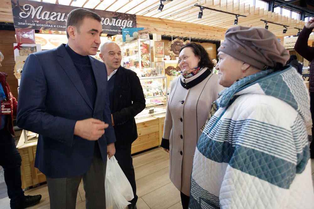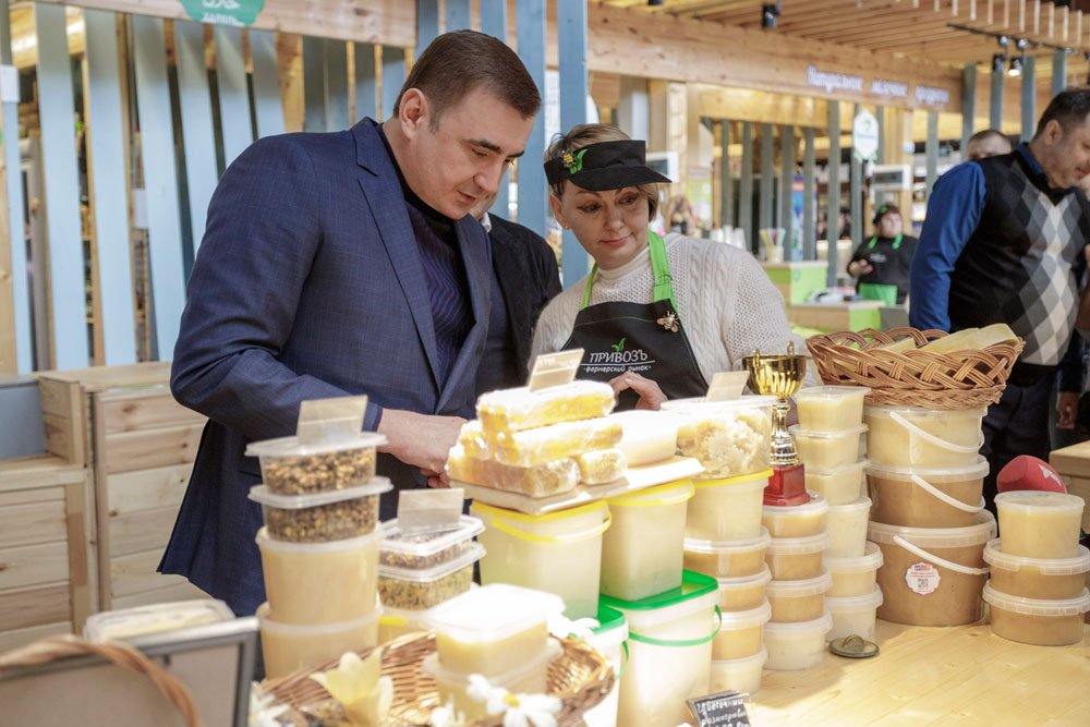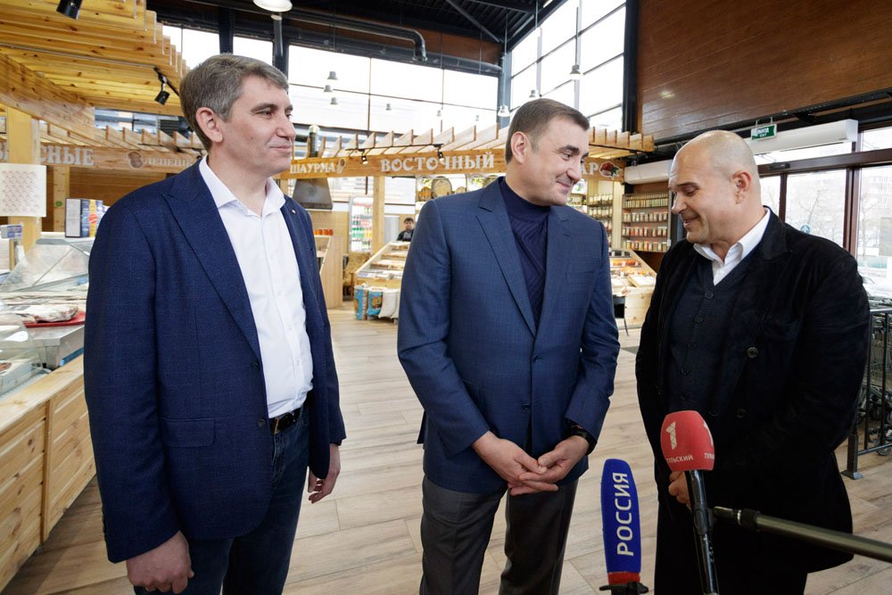 30 марта Губернатор Алексей Дюмин посетил тульский фермерский рынка «Привозъ». Глава региона осмотрел торговые ряды и пообщался с сельхозпроизводителями. Владелец комплексов Борис Чистяков сообщил, что на реализацию всего проекта потребовалось чуть более полутора лет. Комплексы строились и вводились в эксплуатацию поэтапно: первый корпус открыт в августе 2018 года, второй - в феврале 2019-го. Приоритет отдается тульским производителям. Здесь реализуют свою продукцию не только сельскохозяйственные организации, но и фермерские хозяйства, а также граждане, которые ведут личное подсобное хозяйство. Представлена продукция около 100 региональных производителей. Сейчас завершается работа по заполнению этого комплекса, устраняются последние недочеты. Алексей Дюмин отметил, что поддержка местных производителей – одна из ключевых задач регионального правительства. Она требует комплексного подхода. Необходимо открывать рынки, проводить ярмарки в Туле и в муниципальных образованиях, помогать фермерам в работе с сетевыми магазинами. Важно развивать кооперацию, содействовать участию наших производителей в конкурсах на поставку продуктов в социальные учреждения, сферу общественного питания. «Нельзя забывать о качестве и безопасности продукции, её соответствии требованиям Роспотребнадзора. Хорошо, что в бизнесе находятся партнёры, помогающие нам в решении этих вопросов. Открытие таких рынков, как «Привозъ», – один из важных элементов этой работы», - подчеркнул глава региона. Губернатор также отметил, что не все продукты могут быть произведены на нашей земле, поэтому, отдавая предпочтение нашим производителям, не стоит забывать и о поставщиках из других регионов. Ассортимент продукции должен быть максимально широким. Кроме того, Алексей Дюмин обратил внимание Бориса Чистякова на необходимость дальнейшего благоустройства и развития комплекса «Салют».