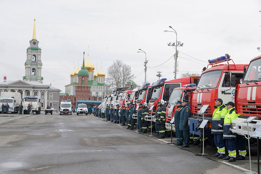 На площади Ленина состоялись торжественное мероприятие и смотр готовности сил и средств территориальной Единой государственной системы предупреждения и ликвидации чрезвычайных ситуаций (РСЧС) к пожарному периоду этого года. В мероприятии приняли участие сотрудники личного состава Управления МЧС по Тульской области и ветераны.