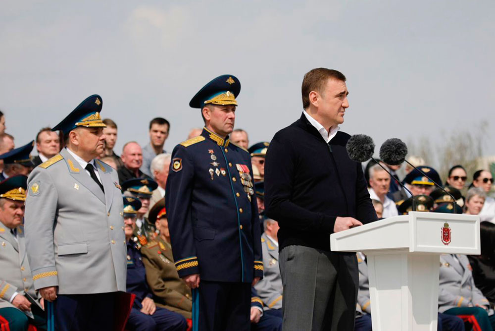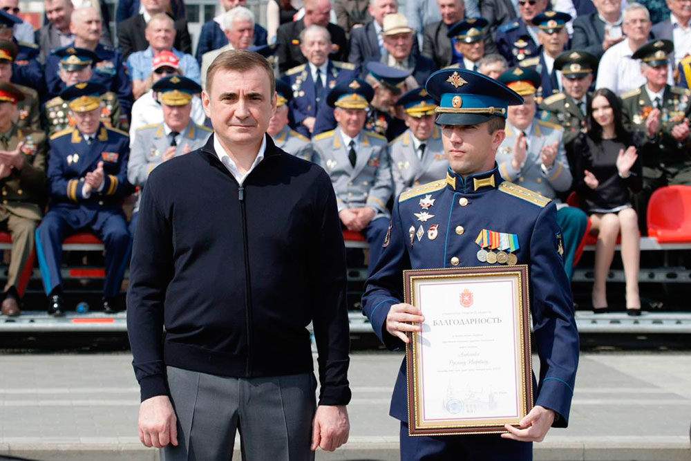 26 апреля на площади Ленина состоялось торжественное мероприятие, посвященное 75-летию со дня формирования 106-й гвардейской Краснознаменной ордена Кутузова II степени Тульской воздушно-десантной дивизии. Гвардейцев поздравил Губернатор Алексей Дюмин. Он отметил, что жители области гордятся тем, что дивизия дислоцируется на тульской земле. Служба в ней для туляков всегда была и остается почетным делом. Алексей Дюмин напомнил собравшимся, что история прославленного соединения хранит немало примеров отваги и самоотверженности – как в годы Великой Отечественной войны, так и в послевоенное время. На протяжении всей своей истории дивизия надежно обеспечивала безопасность мирных граждан, защищала национальные интересы России. Губернатор подчеркнул, что и в наше время, выполняя воинский долг в Сирийской арабской республике, бойцы соединения на деле доказали верность Отечеству. А медицинский отряд активно оказывал помощь пострадавшим местным жителям. «Где бы вы ни были – вы всегда свято храните наши славные ратные традиции, не понаслышке знаете, что такое честь, верность долгу и боевому братству», - сказал Алексей Дюмин. Также глава региона акцентировал внимание на наградах гвардейцев. В частности, за мужество и доблесть 57 тысяч военнослужащих дивизии награждены орденами и медалями. 4 человека удостоены звания Героя Советского Союза, 25 человек – звания Героя России. Из них 16 офицеров, сержантов и солдат награждены посмертно. Личный состав частей и подразделений дивизии вносит большой вклад в военно-патриотическое воспитание допризывной молодежи. Участвует в проведении зарниц и уроков мужества. «Вы служите примером для будущих защитников Отечества. Мы ценим это и оказываем дивизии поддержку в проведении боевой подготовки и решении социальных вопросов», – сказал Алексей Дюмин. Губернатор поблагодарил бойцов за службу. Отдельные слова благодарности он выразил ветеранам дивизии. «Вы укрепляете моральный дух молодых воинов, делитесь с ними боевым опытом и солдатской мудростью», - подчеркнул глава региона. Алексей Дюмин вручил отличившимся военнослужащим государственные и региональные награды. Гвардейцев поздравил с праздником заместитель командующего ВДВ по миротворческим операциям и коллективным силам оперативного реагирования, генерал-лейтенант Александр Вязников. Он также вручил бойцам государственные награды. Мероприятие продолжилось показательными выступлениями военнослужащих разведывательных подразделений по специальной подготовке с демонстрацией приемов рукопашного боя и розыгрыша тактического эпизода. Также гости и участники праздника посмотрели показательные прыжки спортсменов-парашютистов с элементами акробатики.