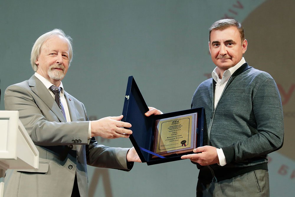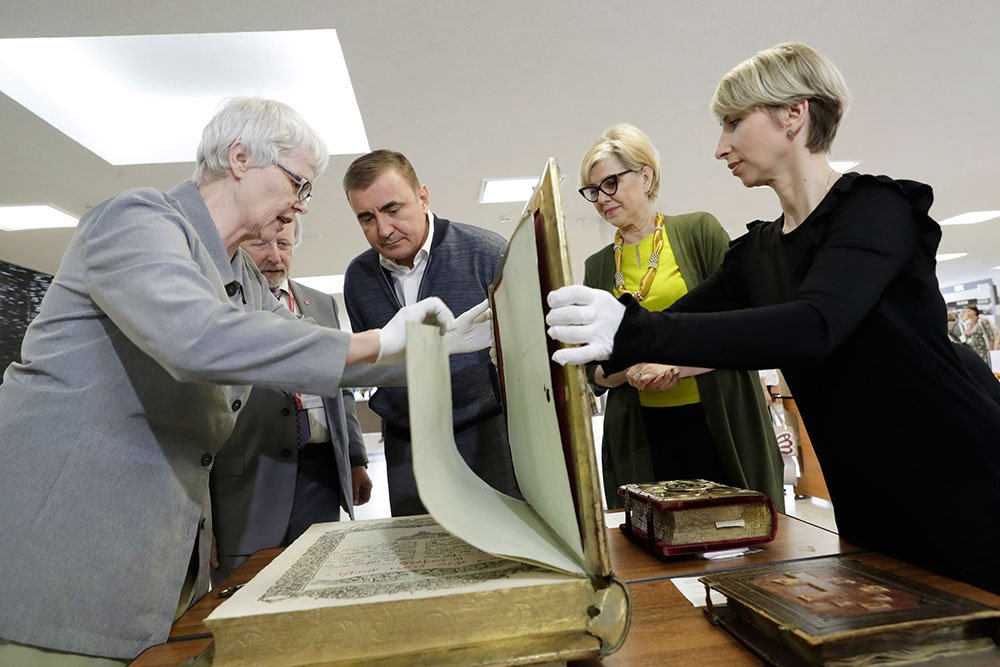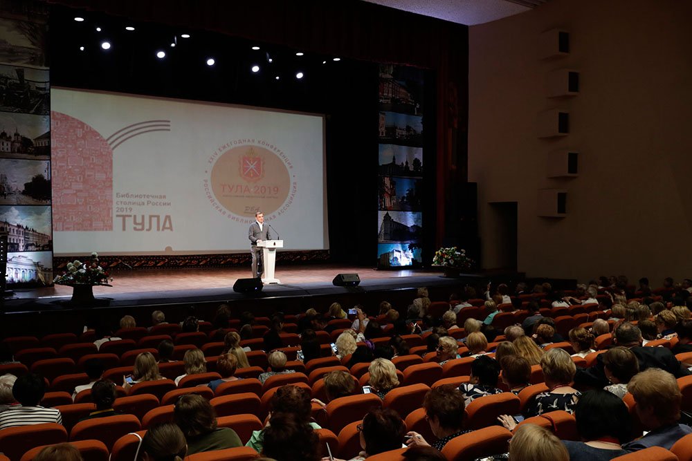 13 мая в Городском концертном зале состоялось торжественное открытие Всероссийского библиотечного конгресса. Мероприятие объединило библиотечных работников из 80 регионов РФ и 15 стран СНГ и дальнего зарубежья. Участников Конгресса приветствовал Губернатор Алексей Дюмин. Он отметил, что каждый год один из российских городов получает почётное звание «Библиотечная столица России». В этом году этой чести удостоена Тула. «Проведение Конгресса в Тульской области даст новый импульс развитию библиотек нашего региона и всей страны. Тем более, что есть поручение Президента России, в том числе в рамках нацпроекта по культуре, – обеспечить муниципальные библиотеки классической и современной литературой, литературой для детей, поддерживать авторов детских книг», - отметил Алексей Дюмин. Глава региона подчеркнул, что в рамках нацпроекта на эти цели будут выделяться федеральные средства, но это не значит, что регионы должны полагаться только на них. Нужно в инициативном порядке на региональном уровне поддерживать наши библиотеки. Алексей Дюмин вручил двум муниципальным библиотекам в Чекалине и Дубне сертификаты по 500 тысяч рублей каждый. Эти средства пойдут на покупку мультимедийного оборудования и пополнение фондов необходимыми изданиями, в том числе – классической литературой и книгами для детей. Президент Российской библиотечной ассоциации Михаил Афанасьев вручил Алексею Дюмину знак «Тула – библиотечная столица России 2019 года». Глава региона осмотрел выставку редких книг, организованную Тульской областной научной библиотекой и краеведческим музеем Тульской области. Среди экспонатов – Евангелие XV века, написанное на пергаменте от руки и большое служебное напрестольное Евангелие 1759 г. в серебряном окладе весом 15 кг. *** Всероссийский библиотечный конгресс, который ежегодно организует Российская библиотечная ассоциация, проходит в Туле с 11 по 17 мая при поддержке Министерства культуры Российской Федерации и правительства Тульской области. В нем принимают участие 1200 специалистов библиотек, музейных работников, педагогов, преподавателей вузов и представителей книжного бизнеса из регионов России и из-за рубежа. Тема Конгресса 2019 года: «Концепция развития и стратегические задачи библиотечного дела в России». Тематика заседаний будет связана с разработкой Концепции. Для специалистов пройдут обучающие мероприятия – «Школа комплектатора», «Школа библиотечного блогера», «Школа реставратора». До завершения Конгресса будет работать XX Выставка издательской продукции, новых информационных технологий, товаров и услуг для библиотек.