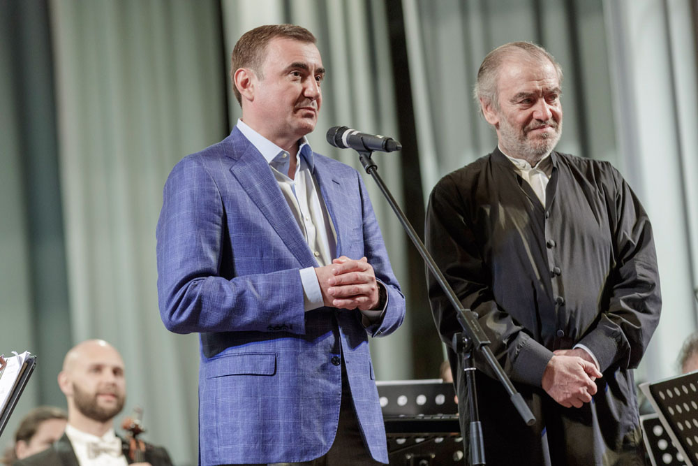 Приветствуя участников и гостей фестиваля, Алексей Дюмин поблагодарил Валерия Гергиева и коллектив оркестра за внимание к Тульской области, творчество, яркие эмоции, которые они дарят слушателям.