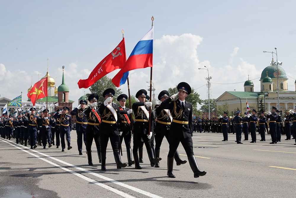 Замыкали эту часть парадного шествия парадный расчет Тульского суворовского военного училища, воспитанники Первомайской кадетской школы, юнармейцы, учащиеся центра детского-юношеского туризма и патриотического воспитания г. Тулы.