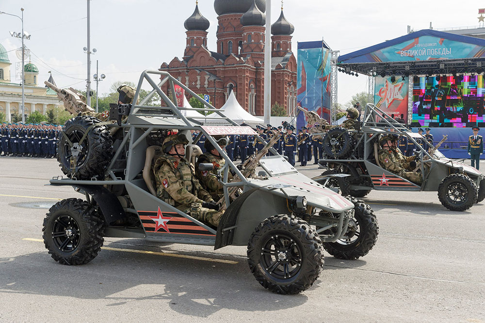 Впервые в параде приняла участие механизированная колонна Федеральной службы войск национальной гвардии. На вооружении подразделений сил специального назначения – легкие вооруженные тактические автомотовездеходы Чаборз М-3.