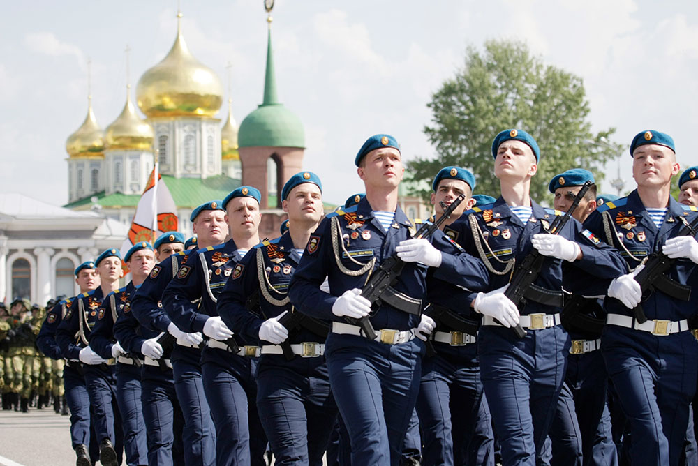 Торжественным маршем по площади прошли воины прославленной 106-й гвардейской воздушно-десантной дивизии. Совсем недавно дивизия праздновала 75-ю годовщину создания. Туляки гордятся, что в их городе дислоцируется столь легендарное десантное соединение.