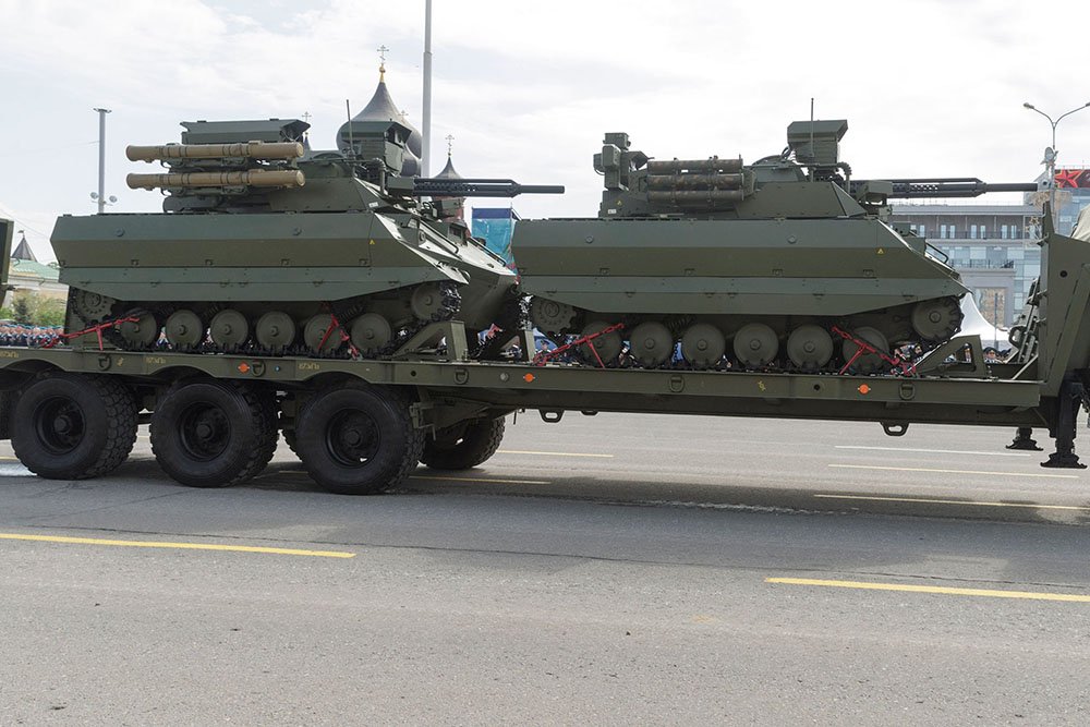 Замыкали колонну боевые машины самоходного противотанкового ракетного комплекса «Корнет-ЭМ» на базе автомобиля «Тигр» и зенитно-ракетно-пушечные комплексы «Панцирь-С1» на базе КамАЗ. Проекты разработаны в Конструкторском бюро приборостроения имени академика Аркадия Георгиевича Шипунова, выпускаются на тульском предприятии «Щегловский вал» при участии АК «Туламашзавод», завода «Тулаточмаш», «Центрального конструкторского бюро аппаратостроения».