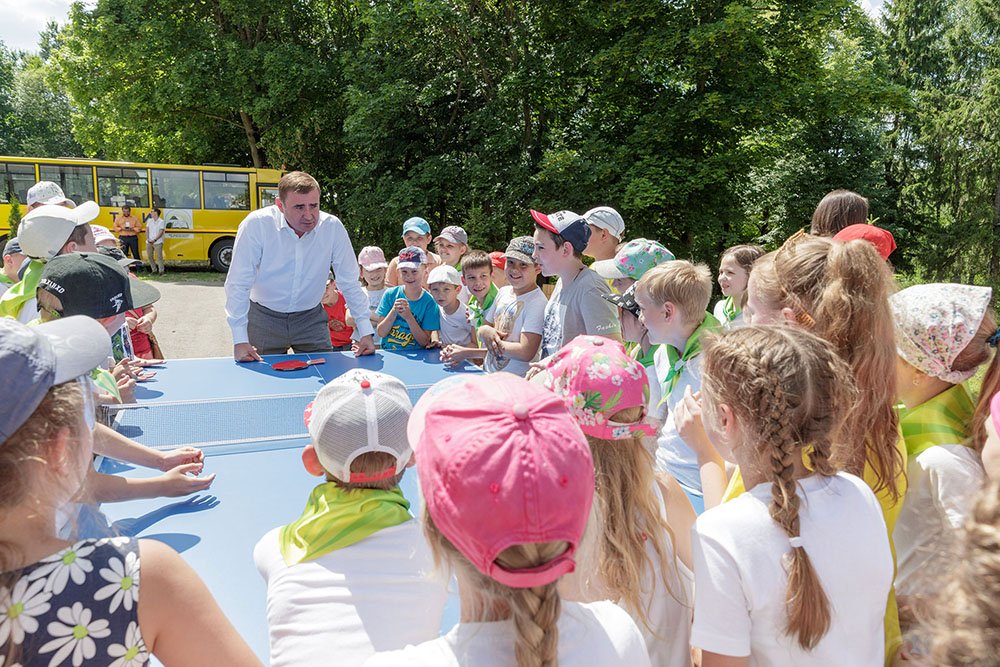 21 июня Губернатор Алексей Дюмин посетил лагерь с дневным пребыванием детей в школе Яснополянского образовательного комплекса им. Л.Н. Толстого. Министр образования Тульской области Алевтина Шевелева доложила Губернатору, что в этом году в рамках регионального проекта «Профильная смена лагерей с дневным пребыванием детей» в школах открылись 413 таких лагерей. В них отдыхают более 27 тысяч детей. Для ребят организованы тематические занятия по естественнонаучному, краеведческому, творческому, техническому и другим направлениям. «Важно, чтобы отдых в летних лагерях был организованным и полноценным, чтобы дети могли не только восстанавливать силы и здоровье, но и развивать свой творческий потенциал», - подчеркнул Алексей Дюмин. Глава региона осмотрел помещения школы. Директор Яснополянского образовательного комплекса им. Л.Н. Толстого Дмитрий Киселев рассказал об организации лагеря. Для ребят работает столовая, оборудованы спальные места, места для отдыха и игр. В рамках профильной смены лагеря и образовательных естественнонаучных каникул «УмникУм» областного эколого-биологического центра для детей была проведена квест-игра «Мирное небо», посвященная Дню памяти и скорби. Алексей Дюмин посетил площадки квеста и осмотрел оборудование учебных классов: лингафонного кабинета, кабинета робототехники, коворкинг-зоны. Дмитрий Киселев отметил, что в прошлом году в школу было закуплено новое оборудование, а к началу этого учебного года завершается ремонт школьного музея, актового и спортивного залов. Губернатор пообщался с ребятами, педагогами и учащимися Областного эколого-биологического центра. На площадке «Символы Тульского края» ученики центра вместе с педагогами знакомили воспитанников лагеря с символикой Тульской области и гербами муниципальных образований. Ребята рассказали главе региона о занятиях в центре. После завершения квест-игры школьники и преподаватели высадили возле школы две туи и канадские ели. Алексей Дюмин проверил противопожарную и антитеррористическую безопасность школы, в частности, работу систем и скорость реагирования оперативной группы «Росгвардии». Губернатор поручил Алевтине Шевелевой предусмотреть дополнительные средства на повышение безопасности учреждения в рамках средств, выделенных на эти нужды после пересмотра бюджета региона. По итогам визита Алексей Дюмин передал школе два теннисных стола. Ребята сразу же опробовали новое оборудование, с ними сыграл и Губернатор. В завершение глава региона угостил всех воспитанников мороженым.