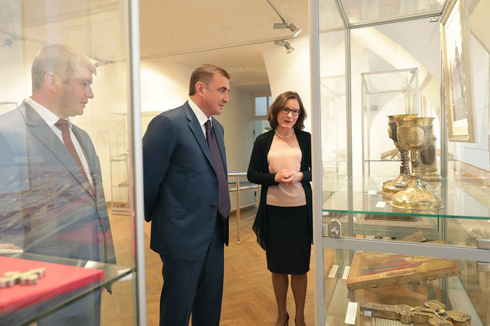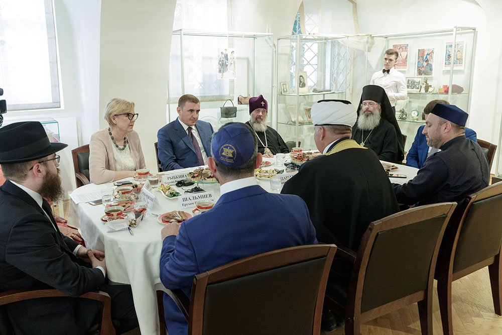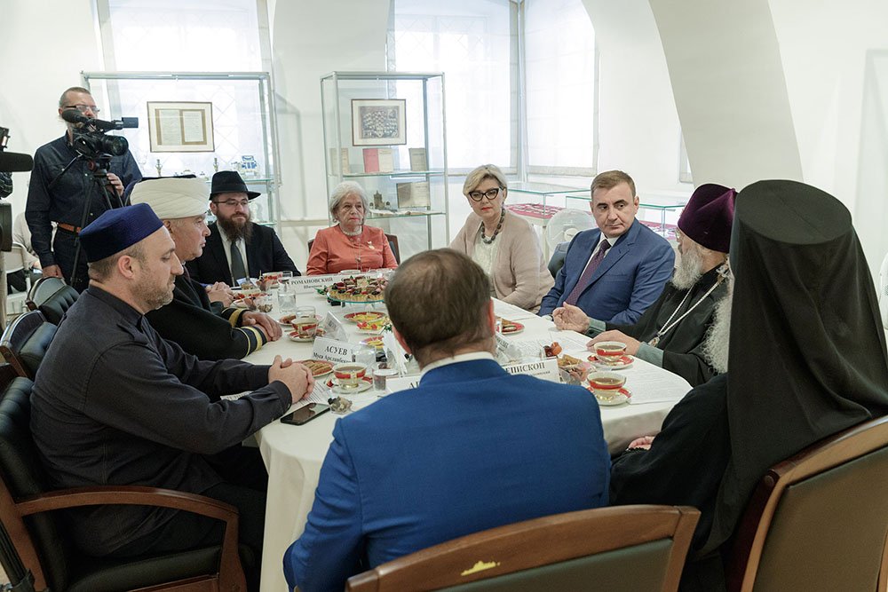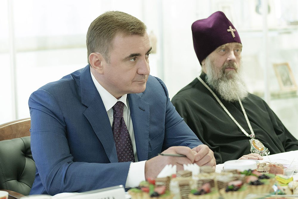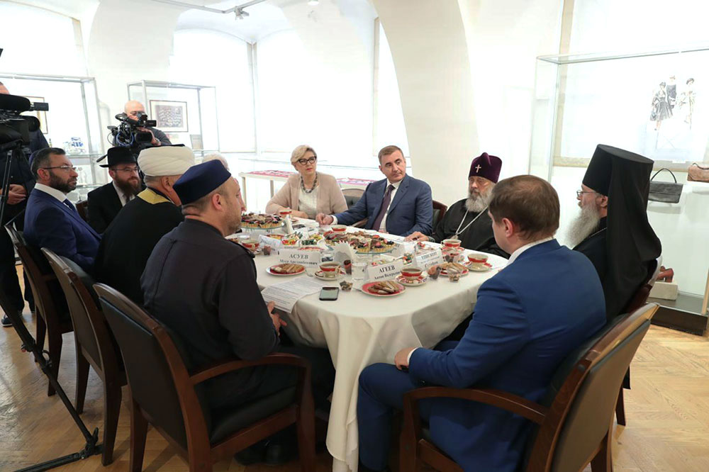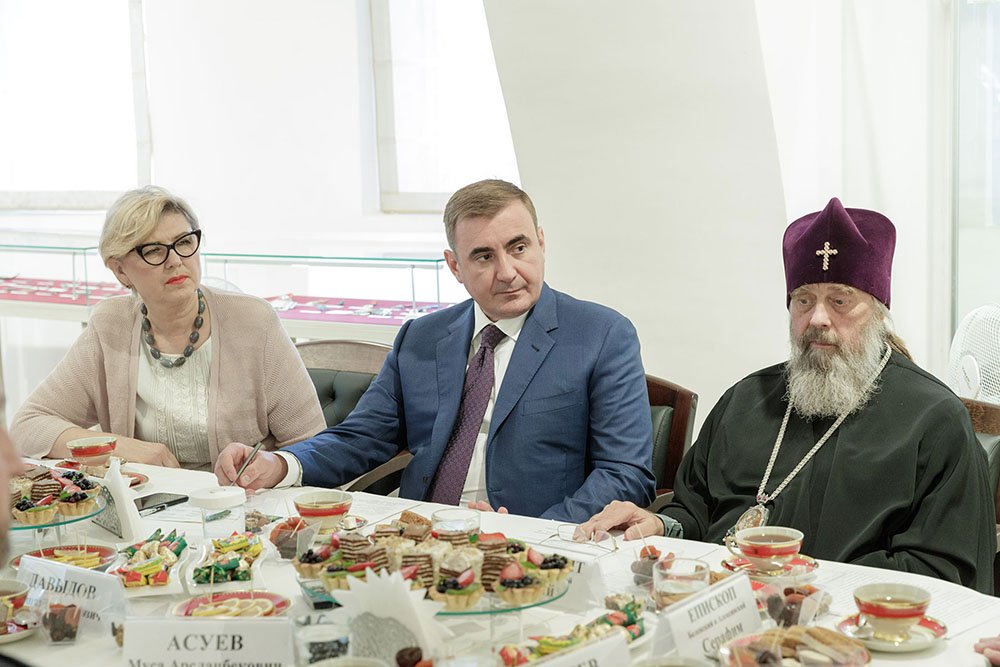 6 августа в Тульском областном краеведческом музее Губернатор Алексей Дюмин встретился с представителями основных конфессий региона. Перед встречей глава региона осмотрел выставки «Духовное наследие земли Тульской». Приветствуя участников мероприятия, Губернатор напомнил, что о серьёзной роли представителей конфессий в жизни нашего общества не раз говорил Президент России Владимир Путин. Глава государства отмечал духовно-нравственную поддержку, которую религиозные организации оказывают людям. «Вы реализуете ряд социальных проектов – для старшего поколения, для инвалидов, для людей, столкнувшихся с бедой. Не секрет, что иногда религиозные объединения могут сделать даже больше, чем специалисты», - сказал глава региона. В рамках национального проекта «Демография» в регионе реализуется проект «Старшее поколение», цель которого – создание условий для активного долголетия наших жителей. У каждой религиозной организации есть свой уникальный опыт социальной работы – с молодёжью, людьми старшего возраста, людьми с ограниченными возможностями здоровья, гражданами, находящимися в трудных жизненных ситуациях. «Наша с вами задача – объединить усилия и расширить эту работу, интегрировав свои нестандартные подходы и решения в рамках действующего проекта», - подчеркнул Губернатор. Министр культуры Тульской области Татьяна Рыбкина сообщила, что правительство региона наладило тесное взаимодействие с основными конфессиями, которые существуют на территории Тульской области. Ежеквартально собирается рабочая группа по рассмотрению вопросов религиозного значения в Тульской области. Религиозным организациям на постоянной основе оказывается методическая и консультационная помощь. Ежегодно реализуется целая программа культурно-просветительских мероприятий. «Сегодня мы впервые поднимаем тему взаимодействия с конфессиями в вопросах социальной помощи», - подчеркнула Татьяна Рыбкина. Представители конфессий рассказали о своей работе в рамках социальной помощи жителям региона. Митрополит Тульский и Ефремовский Алексий поблагодарил Губернатора за внимание к вопросам церкви, поддержку значимых мероприятий и проектов. В частности, Владыка отметил, что на территории Всехсвятского собора в двух зданиях расположен епархиальный Центр гуманитарной помощи малоимущим гражданам различных национальностей, в том числе многодетным семьям, детям-инвалидам, одиноким пожилым людям, людям с ограниченными возможностями здоровья. В настоящее время помещения Центра требуют ремонта. Алексей Дюмин поручил Татьяне Рыбкиной проработать вопрос ремонта действующего помещения или подбора другого. Епископ Белевский и Алексинский Серафим рассказал о старейших монастырях Белевской епархии, об их роли в поддержке людей, оказавшихся в трудных жизненных ситуациях. Серафим поблагодарил Алексея Дюмина за поддержку Белевских монастырей в рамках проекта 500-летия Тульского кремля и Большой засечной черты и пригласил главу региона на освящение Спасо-Преображенского собора 19 августа. Председатель религиозной общественной организации «Общество мусульман «Иман» Ришат Давыдов рассказал о работе поддержки семей с низким доходом, людей, оказавшихся в трудном материальном положении, с пожилыми людьми, выездах на дом к инвалидам. Отдельное направ
