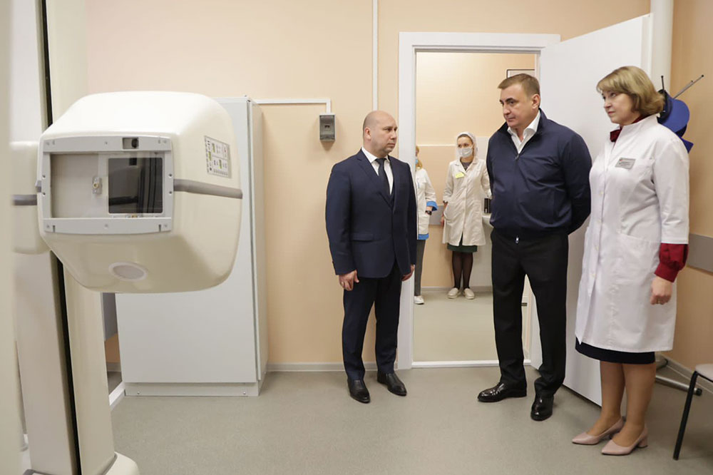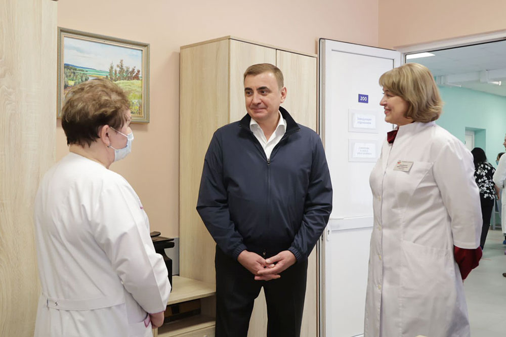 31 марта Губернатор Алексей Дюмин посетил взрослую поликлинику Тульской городской клинической больницы скорой медицинской помощи им. Д.Я. Ваныкина. В этом году здесь по программе модернизации первичного звена в рамках национального проекта «Здравоохранение» завершился капитальный ремонт. Поликлинику дооснастили современным оборудованием. Учреждение, обслуживающее 45 тысяч жителей, полностью обновили впервые за последние 20 лет. Главный врач больницы Ирина Рублевская сообщила, что на ремонт было выделено более 28 млн рублей, в том числе 10,4 млн – из федерального бюджета. Отремонтированы фасад, входные группы, внутренние помещения. Для удобства жителей рентген-кабинет перенесён на 1-й этаж. Также в рамках программы модернизации приобретены 3 аппарата УЗИ, 8 аппаратов холтеровского мониторирования сердечной деятельности, эндоскопическое и прочее оборудование. «Во время ремонта поликлиника продолжала работать в штатном режиме. Работы шли поэтапно, параллельно прием проводился в уже отремонтированных помещениях. После ремонта созданы более удобные кабинеты, организованы зоны ожидания, проведено разделение потоков», - сказала Ирина Рублевская. По программе модернизации первичного звена в 2025-2026 гг. запланирован капитальный ремонт детской поликлиники больницы. Алексей Дюмин спросил об укомплектованности кадрами. По словам Ирины Рублевской, в поликлиническом отделении работают 40 врачей и 43 средних медицинских работника. Коллектив пополняется выпускниками медицинских вузов. До конца года в больницу придут работать 35 молодых врачей, завершающих обучение по целевому набору, 7 из них будут работать в этой поликлинике. Ординаторы, которые скоро придут работать в учреждение, рассказали Губернатору, как с 2020 года помогали пациентам с коронавирусом в поликлинике и в инфекционных госпиталях. Глава региона поблагодарил их за содействие и желание и дальше работать по специальности. Алексей Дюмин подчеркнул, что сейчас на специалистах первичного звена лежит самая большая нагрузка. Для поддержки молодых специалистов и врачей, которые уже работают по этим специальностям, по поручению Губернатора будет введена ежемесячная доплата. С 1 июня её начнут получать участковые педиатры, а с 1 сентября – участковые терапевты и врачи общей практики. Для этого в этом году в региональном бюджете будет предусмотрено 60 млн рублей. Ранее в Тульской области была введена доплата для врачей-неонатологов. Она позволила менее чем за полгода почти на четверть увеличить укомплектованность медучреждений. Алексей Дюмин посетил обновленные кабинеты, осмотрел новое оборудование и пообщался с медиками. Среди них – врач общей практики Надежда Сафронова, работающая в учреждении более 30 лет, и молодой врач-терапевт Михаил Щукин, который в прошлом году переехал в Тулу из Орловской области и получил здесь квартиру. Губернатор поблагодарил врачей за работу. В регионе продолжается работа по обновлению учреждений здравоохранения. «По программе модернизации первичного звена здравоохранения в Тульской области уже капитально отремонтировано 16 объектов, установлено 32 модульных ФАПа в 13 муниципальных образованиях. Благодаря поддержке федерального центра мы продолжаем эту работу», - отметил Алексей Дюмин. Заместитель председателя правительства – министр здр