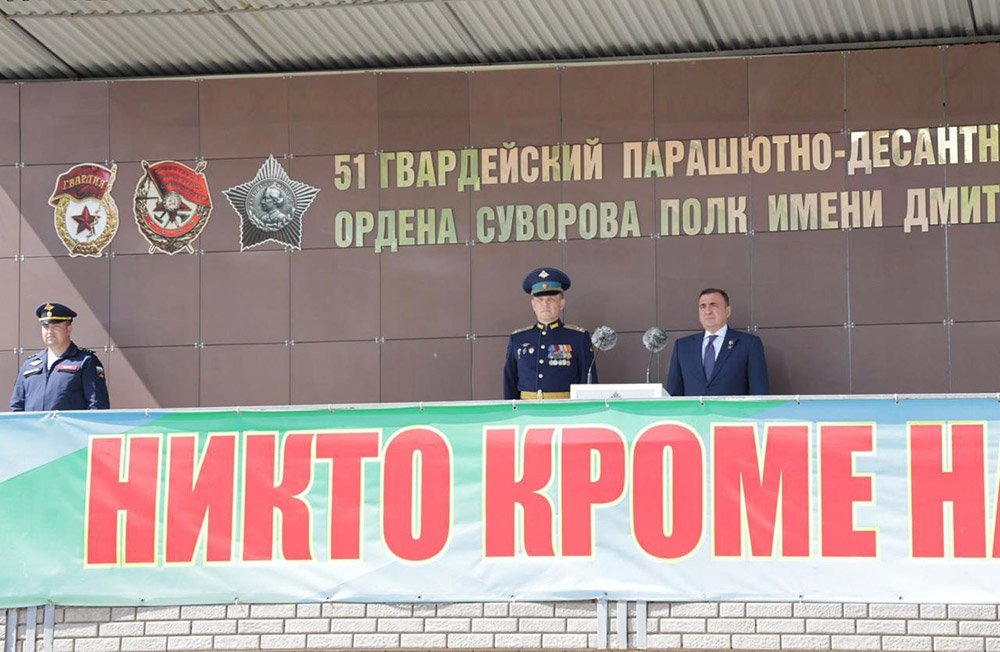2 августа в 106-й гвардейской воздушно-десантной Тульской Краснознамённой ордена Кутузова дивизии состоялись мероприятия, посвященные 92-й годовщине образования Воздушно-десантных войск. Губернатор Алексей Дюмин и временно исполняющий обязанности командира дивизии Алексей Быков возложили цветы к памятнику десантникам, погибшим при исполнении воинского долга. Обращаясь к личному составу и ветеранам дивизии, глава региона отметил, что ВДВ по праву считаются гордостью и элитой нашей армии. «Служба в ваших рядах всегда была и остаётся настоящей школой мужества. Вы всегда там, где нужны особая боевая выучка и отличная физическая подготовка. Вы готовы чётко и профессионально выполнить любую поставленную задачу. Мы гордимся тем, что военнослужащие Воздушно-десантных войск достойно продолжают ратные традиции Отечества. Мужественно защищают всё то, за что воевали наши деды и прадеды», - сказал Алексей Дюмин. Глава региона напомнил, что сегодня в ходе специальной военной операции на Донбассе и Украине на десантников возлагаются самые сложные и опасные боевые задачи. «Плечом к плечу с сослуживцами вы самоотверженно исполняете свой воинский долг. Порой – ценой собственной жизни. Мы склоняем головы перед боевыми товарищами, которые отдали свою жизнь за наше будущее. Их героизм и искренняя любовь к Родине никогда не будут забыты», - сказал Алексей Дюмин. Была объявлена минута молчания. Губернатор отметил, что Правительство продолжит оказывать поддержку детям погибших и раненых десантников. По словам главы региона, в рядах десантников всегда крепки узы боевого братства. Он поблагодарил ветеранов ВДВ за то, что они передают свой опыт нынешнему поколению защитников Отечества и подают пример высокого профессионализма. Алексей Дюмин вручил военнослужащим государственные и региональные награды, среди которых Ордена Мужества, медали Суворова, «За Отвагу» и «За заслуги перед Отечеством». Состоялись показательные выступления военнослужащих ВДВ и спортсменов-парашютистов, а также показ вооружения, военной и спецтехники.