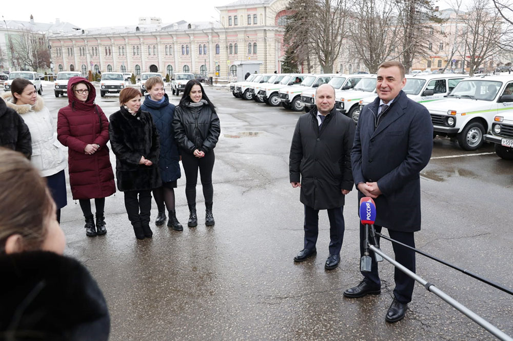 6 марта Губернатор Алексей Дюмин передал медучреждениям региона 33 автомобиля «Лада Нива», приобретенных по программе модернизации первичного звена нацпроекта «Здравоохранение» за счет федерального и регионального бюджетов. Глава региона отметил, что на медиках лежит большая нагрузка. «Правительство Тульской области многое делает, чтобы создать комфортные условия не только для пациентов, но и для самих медработников. Мы строим ФАПы, ремонтируем поликлиники и больницы, закупаем современное оборудование, вводим региональные доплаты», – подчеркнул Алексей Дюмин. Губернатор отметил, что благодаря программе модернизации, которая стартовала в 2021 году, за последние годы автопарк обновлен практически на 100%. Заместитель председателя Правительства – министр здравоохранения Тульской области Дмитрий Марков сообщил, что в 2021-2022 годах по программе модернизации приобретено 239 служебных автомобилей. Еще 33 приобрели в нынешнем году. Машины уже распределены между 14 больницами, большинство из которых – районные. Автомобили будут доставлять пациентов в медучреждения, а медработников – на дом к пациентам. Также на них будут перевозить биологические материалы на исследования и доставлять лекарства жителям отдаленных районов. До конца года поступит еще 33 машины. Алексей Дюмин пообщался с медработниками и поблагодарил их за работу. А также поздравил женщин-медиков с наступающим Международным женским днем, пожелал им здоровья и благополучия.